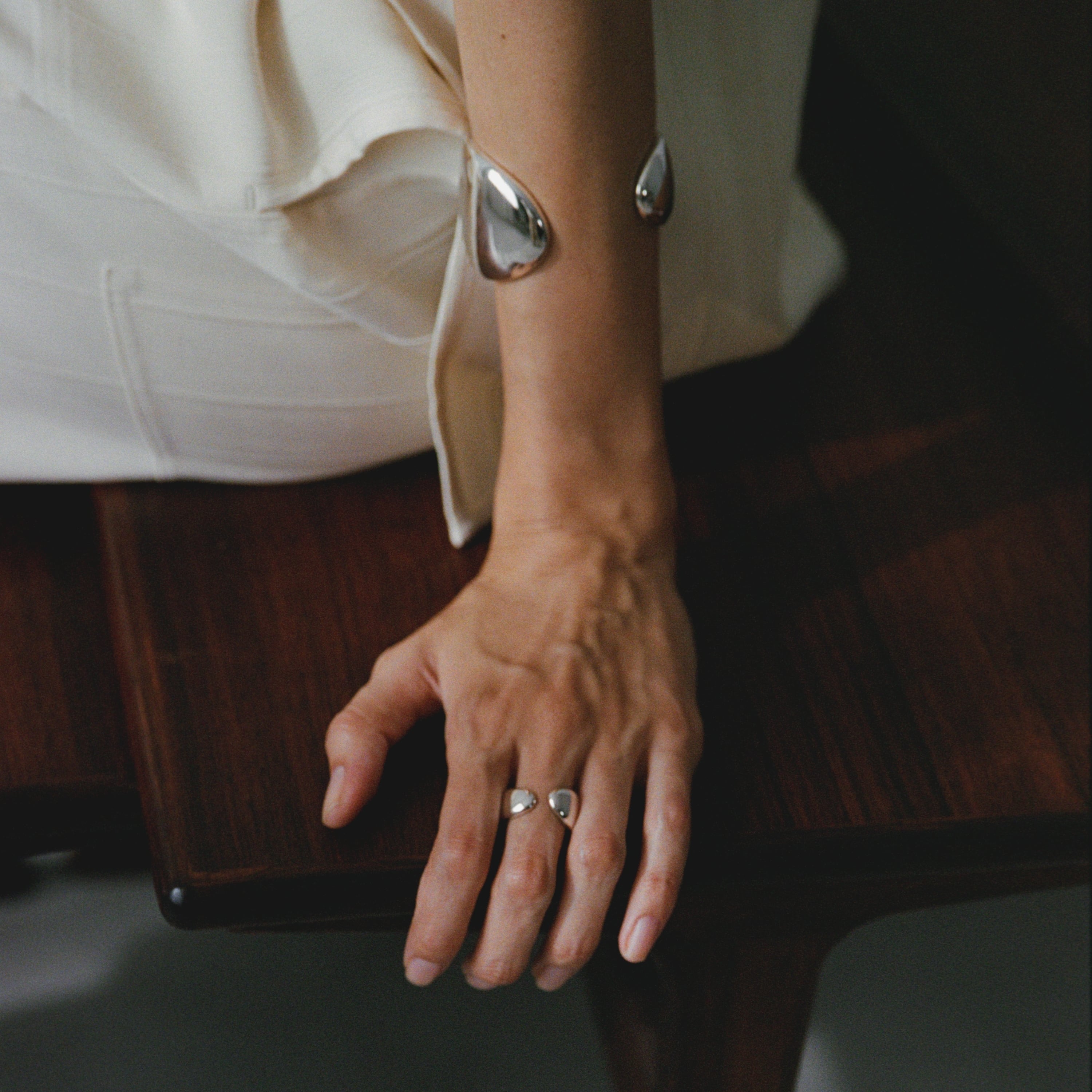 金属の硬いイメージとは反して包み込みような丸み柔らかさを表現。