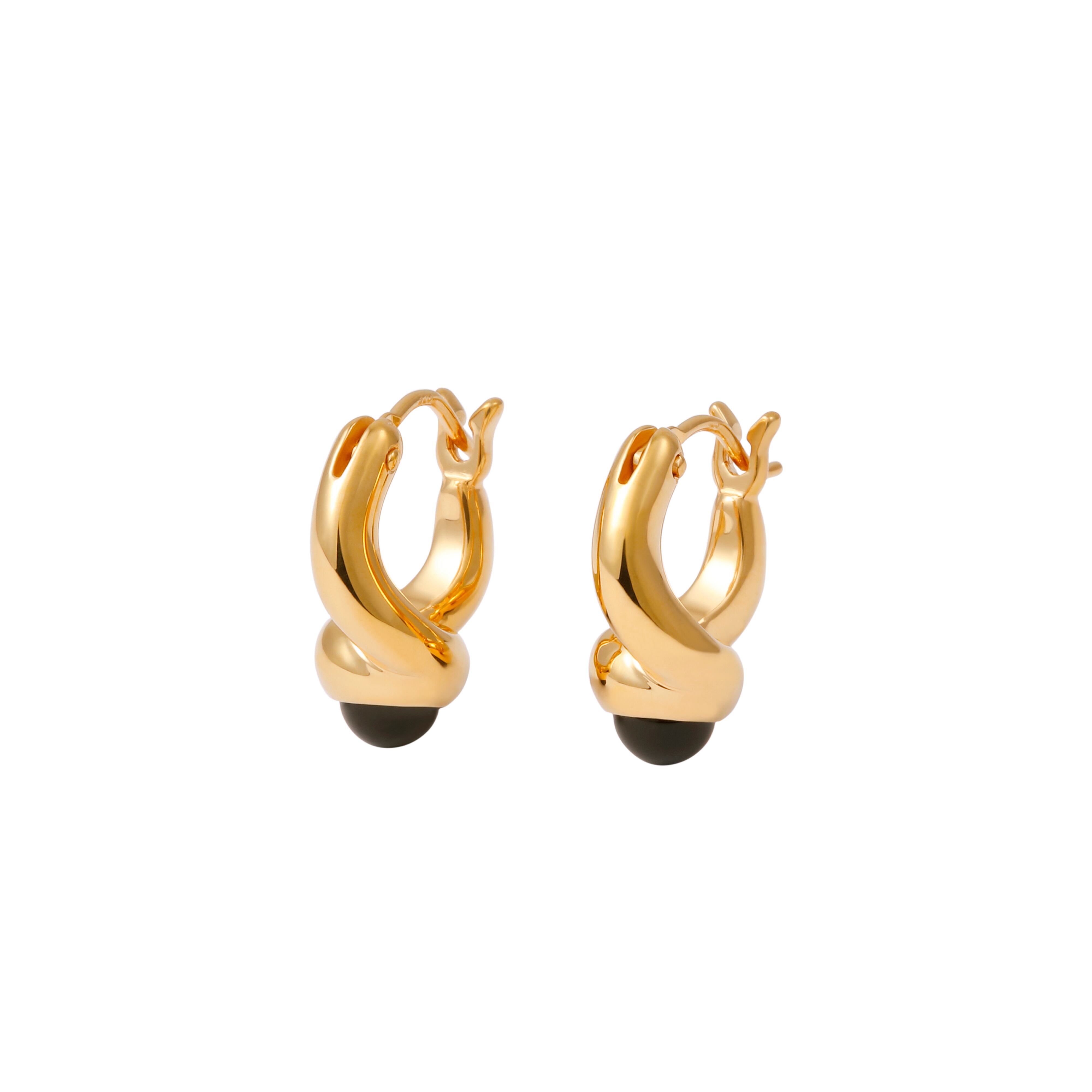 柔らかな曲線が耳元にフィットし、さりげない立体感を生むフープピアス。コンパクトなサイズ感でありながら、程よい厚みがアクセントに。耳に沿うフォルムで日常使いしやすく、シンプルな装いにも自然な存在感をプラスします。黒いオニキスを「付点」として配することで、フォルムの流れと素材のコントラストを際立たせている。